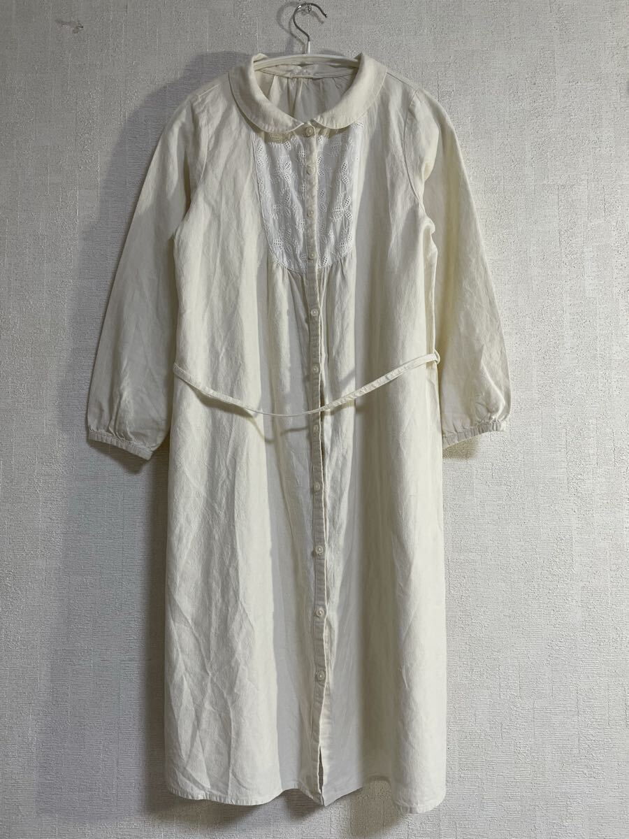 > ★SM2★長袖 シャツ チュニック ワンピース レース付き 前開き 羽織り 綿麻★ホワイト 白★Mサイズ★Samansa Mos2 サマンサモスモス