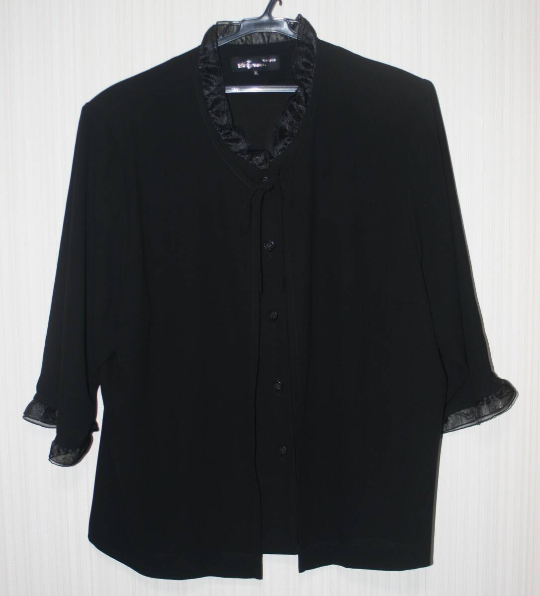 - ★Elegance fashion 黒トップス 重ね着風 7分袖 サイズ3L シャツ フリル 婦人 レディース 中古★