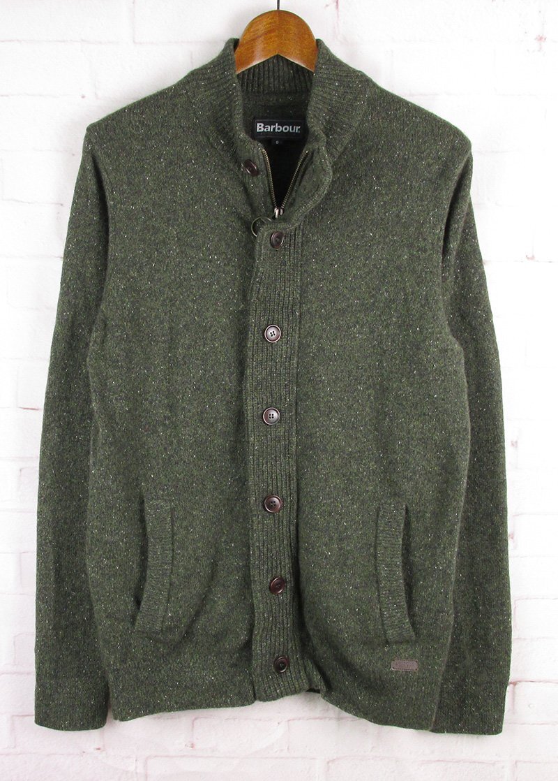 > FW27772 Barbour バブアー Zip Through ニット カーディガン MNK1341 オリーブ系 S 美品