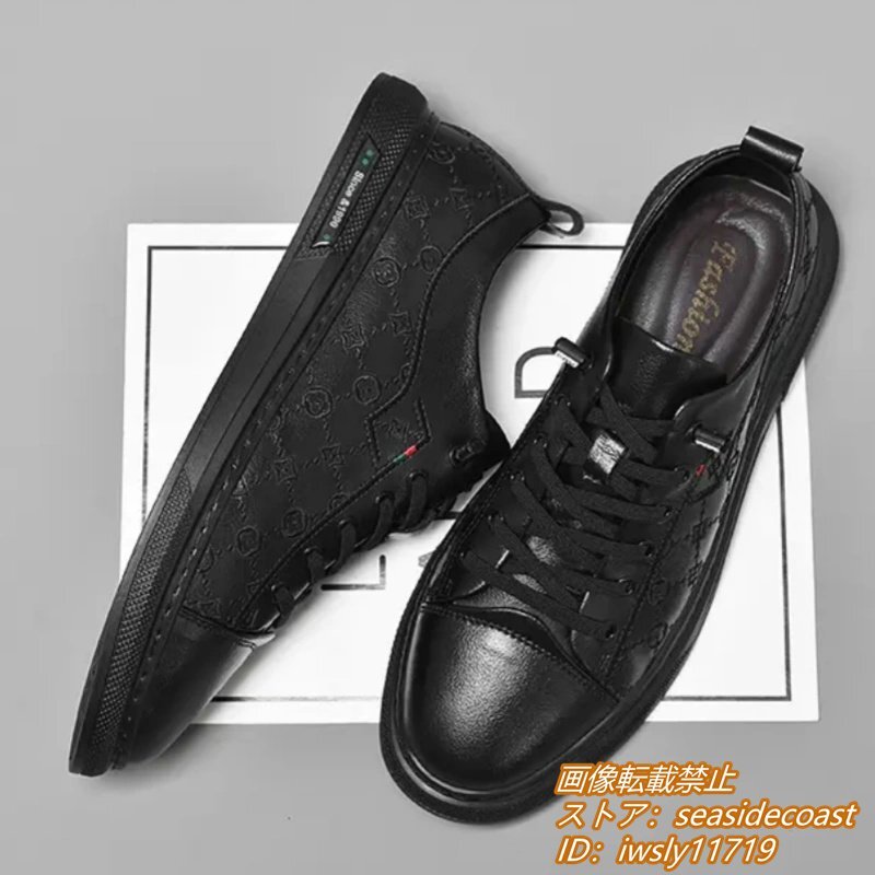 - 新品■スニーカー メンズ 高級牛革 ウォーキング ドライビング レザーシューズ 運動靴 白靴 快適 ローファー 滑り止め ブラック 24.5cm