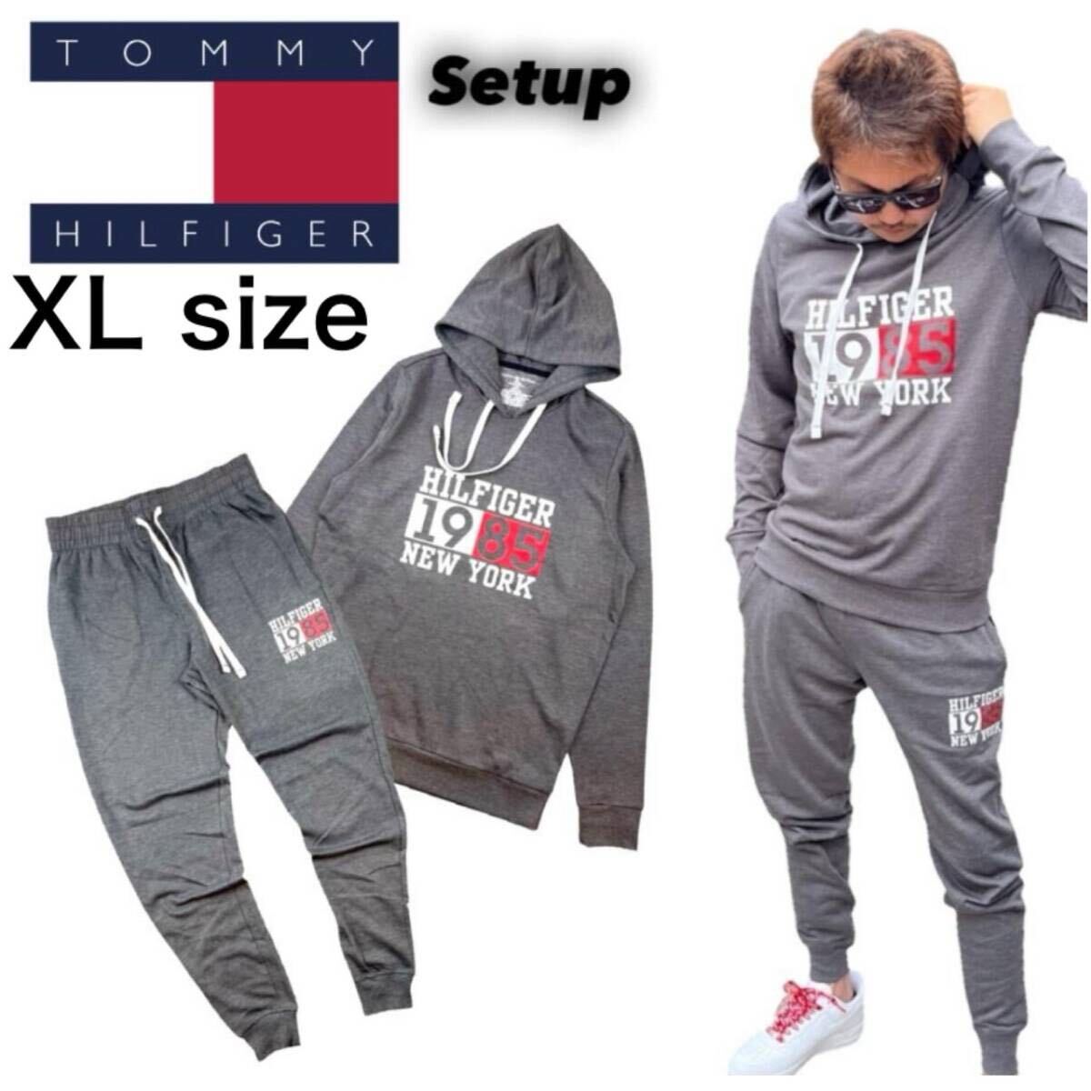 - トミーヒルフィガー セットアップ 上下セット 09T4457/4459 グレー XLサイズ 裏起毛 パーカー スウェット ジョガーパンツ 部屋着 新品