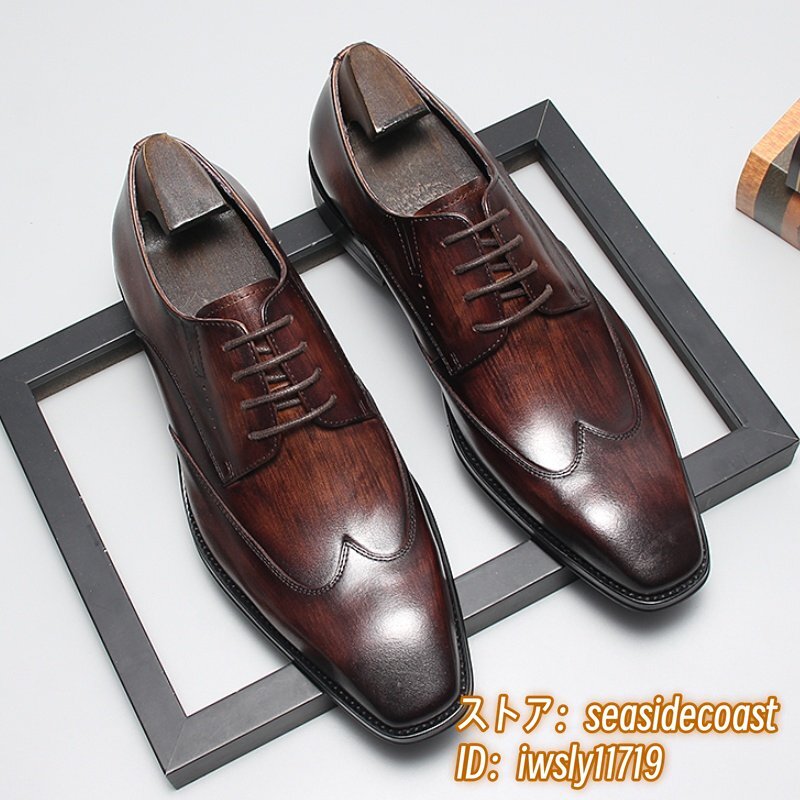 > 定価11万■超美品 ビジネスシューズ メンズ 本革 手塗り上げ 彫り レザーシューズ 牛革 紳士靴 革靴 冠婚葬祭 フォーマル ブラウン 25.0cm