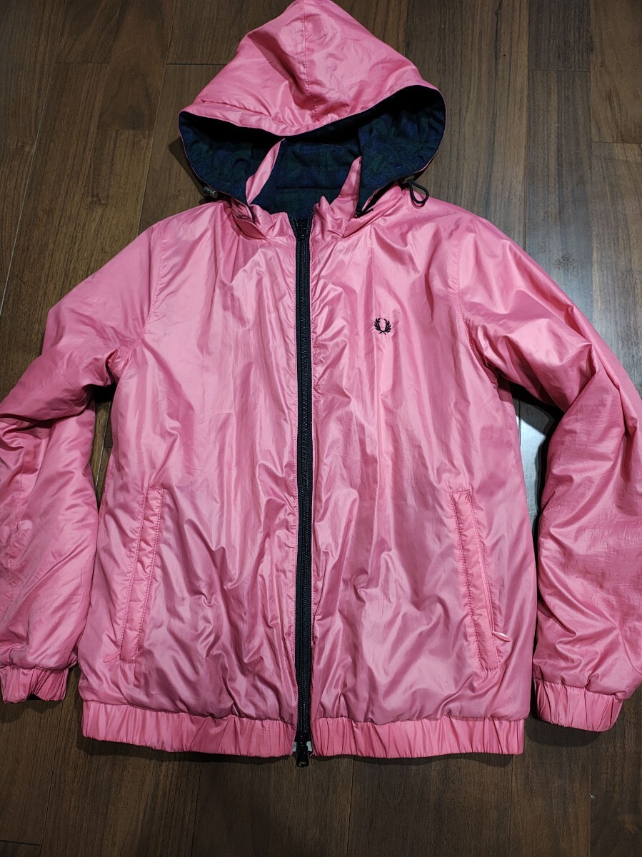 - FRED PERRY フレッドペリー リバーシブルパーカー 刺繍ロゴ ナイロン×ダイヤキルティングチェック レディース サイズS 中綿 秋冬