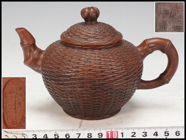 > 【金閣】中国美術 煎茶 朱泥 籠形 茶器 旧家蔵出 送料無料(XA827)