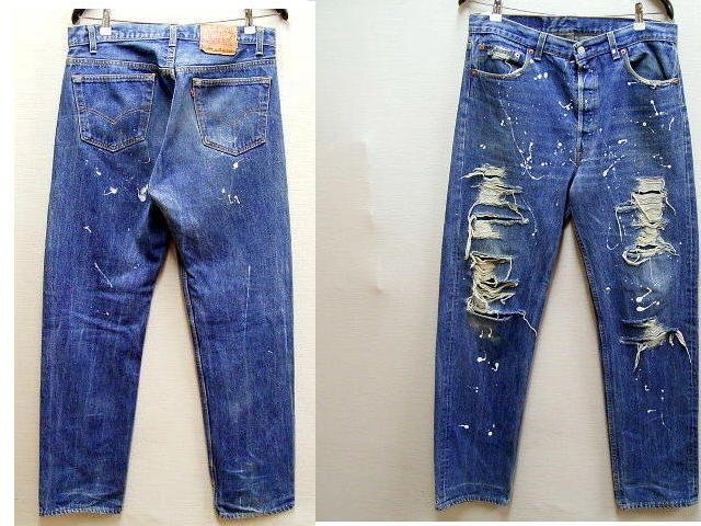 > 即決[W36L34]ビンテージ Levi's 501 95年2月製 90年代 90s USA製 501-0115 ダメージ クラッシュ ペンキ アメリカ デニム パンツ■3622