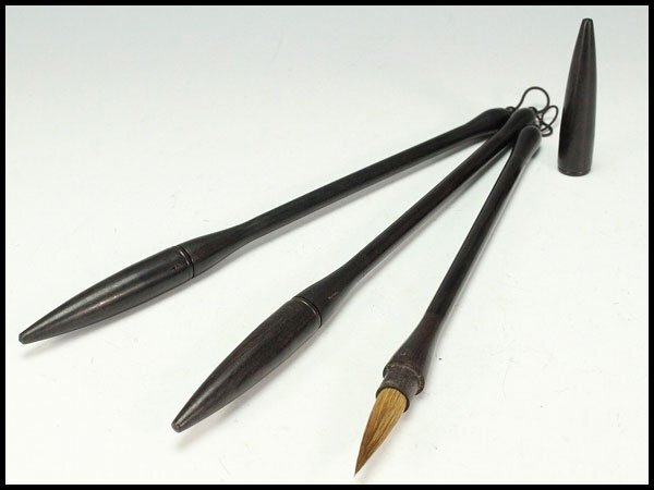 - 【金閣】文房具 紫檀 筆 三件 唐木 蓋付 未使用 旧家蔵出 送料無料(A146)