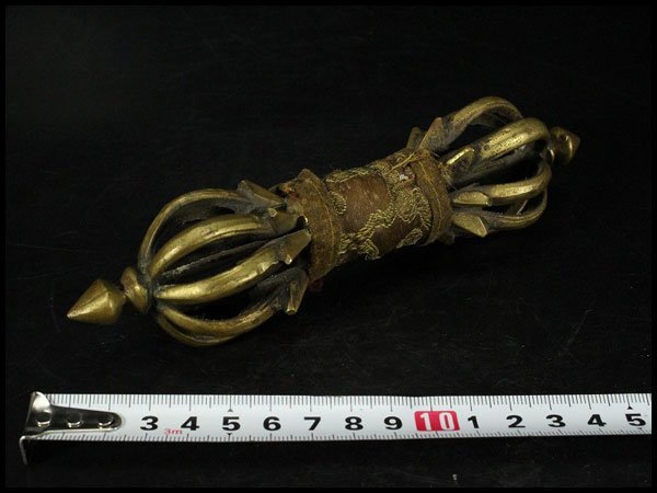 - 【金閣】仏教美術 古銅 五鈷杵 密教 法具 旧家蔵出 送料無料(LC971)