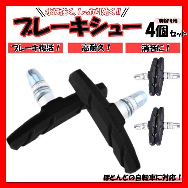 - ブレーキシュー 黒4個セット Vブレーキ ブレーキパッド 自転車 クロスバイク