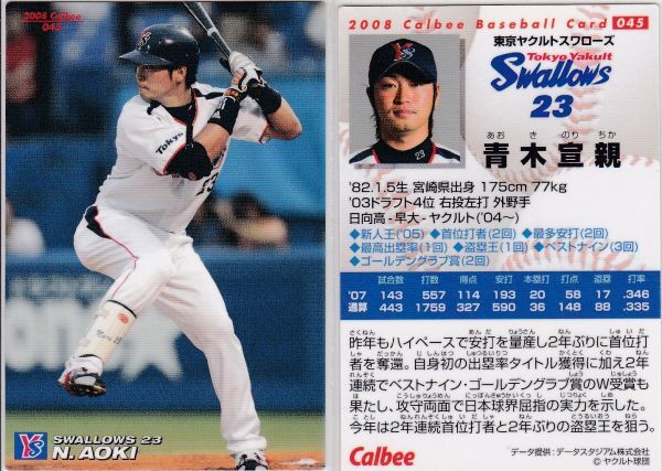 > ●2008カルビー 【青木 宜親】 BASEBALL CARD No.045:ヤクルト R5