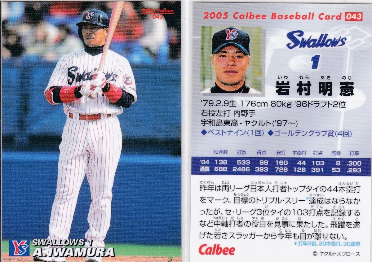 - ●2005カルビー【岩村 明憲】BASEBALL CARD No.043:ヤクルト R4