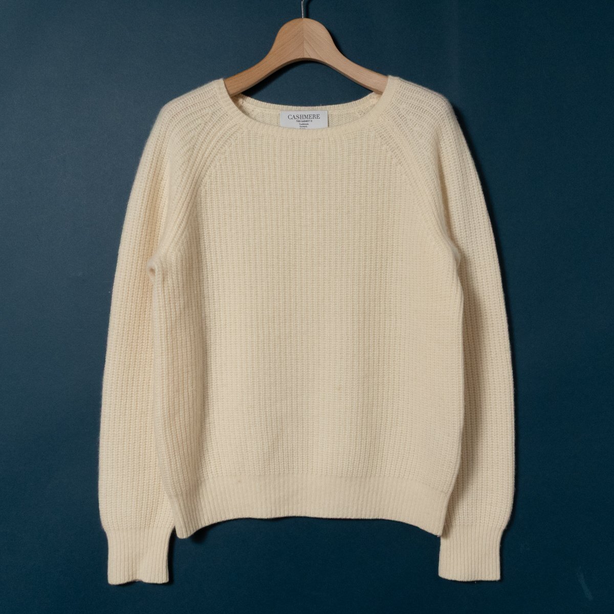> SHIPS シップス カシミヤ アゼ5G ニットプルオーバー セーター オフホワイト 白 38 M レディース カシミヤ100% 無地 シンプル 着回し 冬