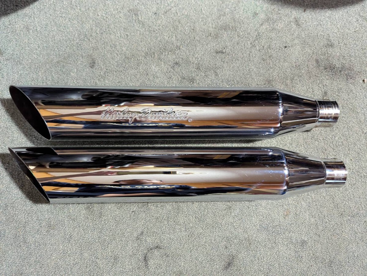 - ダイナ FXD FXDL 95-16 HD純正 北米 スラッシュ スリップオン サイレンサー マフラー クローム 80167-99 80166-99 パンチアウト済 美品