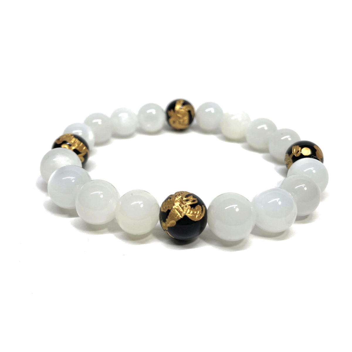 - 10mm 四神獣金彫オニキス×ムーンストーン パワーストーン ブレスレット天然石 運気上昇 開運 幸運 恋愛運 青龍 白虎 玄武 朱雀 ☆