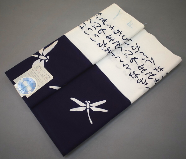 - A13-9【凛々】即決 新古品 本染 ゆかた反物 白 紺 トンボ 未仕立て品