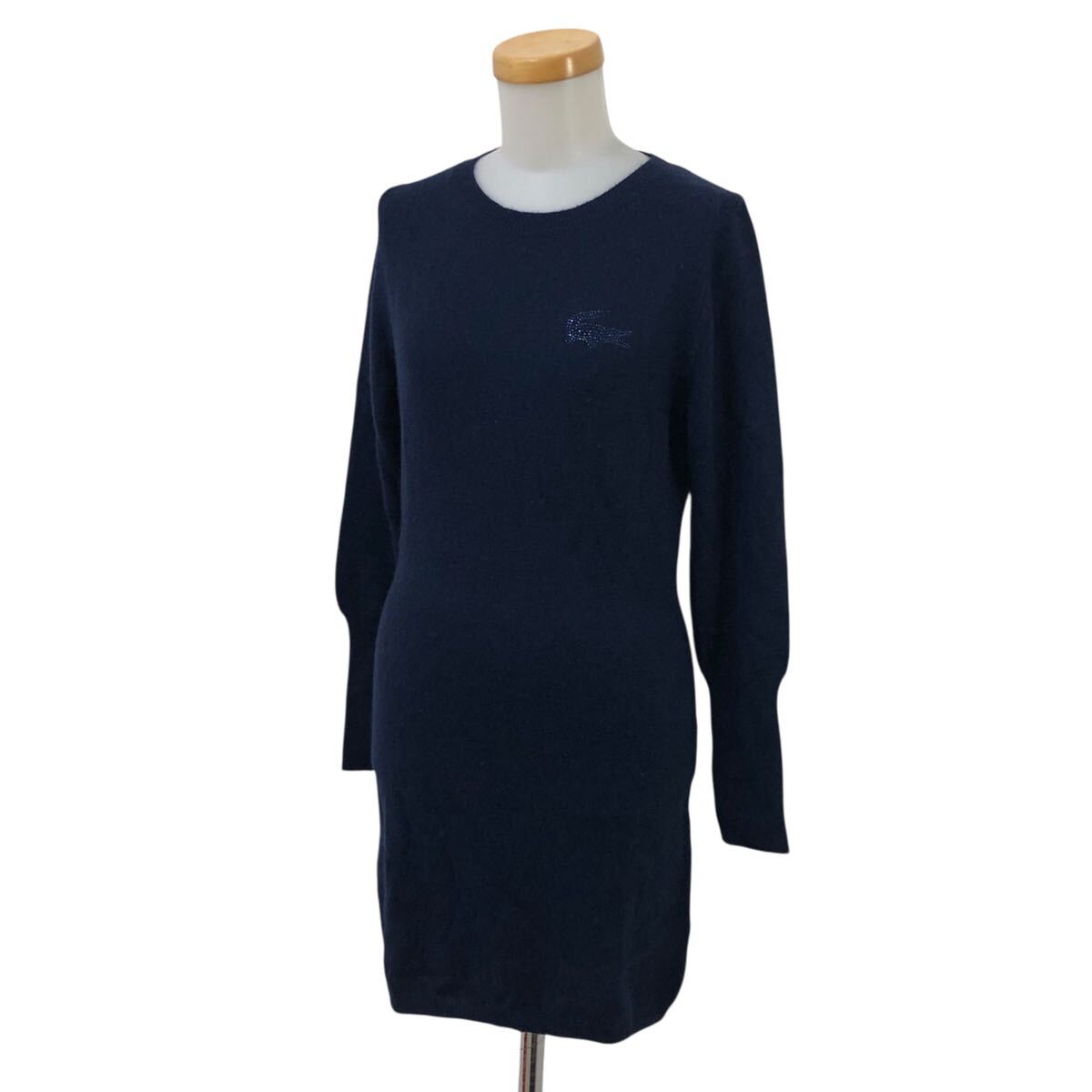 > 10NK007-06 LACOSTE ラコステ カシミヤ混 ニット セーター ロング丈 トップス 長袖 ワンピース ワンピ 青 装飾 ワニ レディース 女性用 34