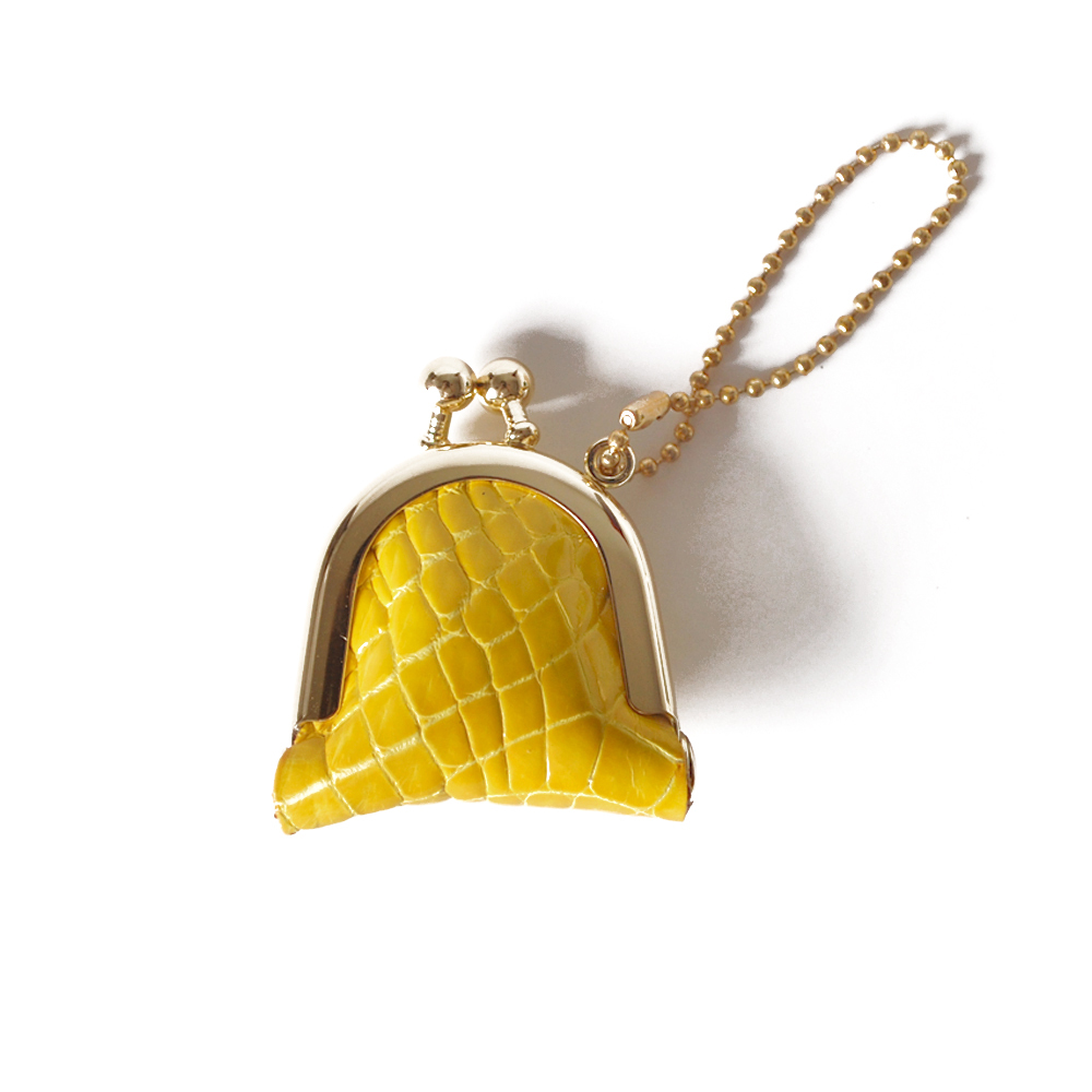 - SALE◆現品お届け◆[Laquju] 小さな小さな口金式クロコダイルコインケース レザー小銭入 バッグチャーム◆イエロー 黄色