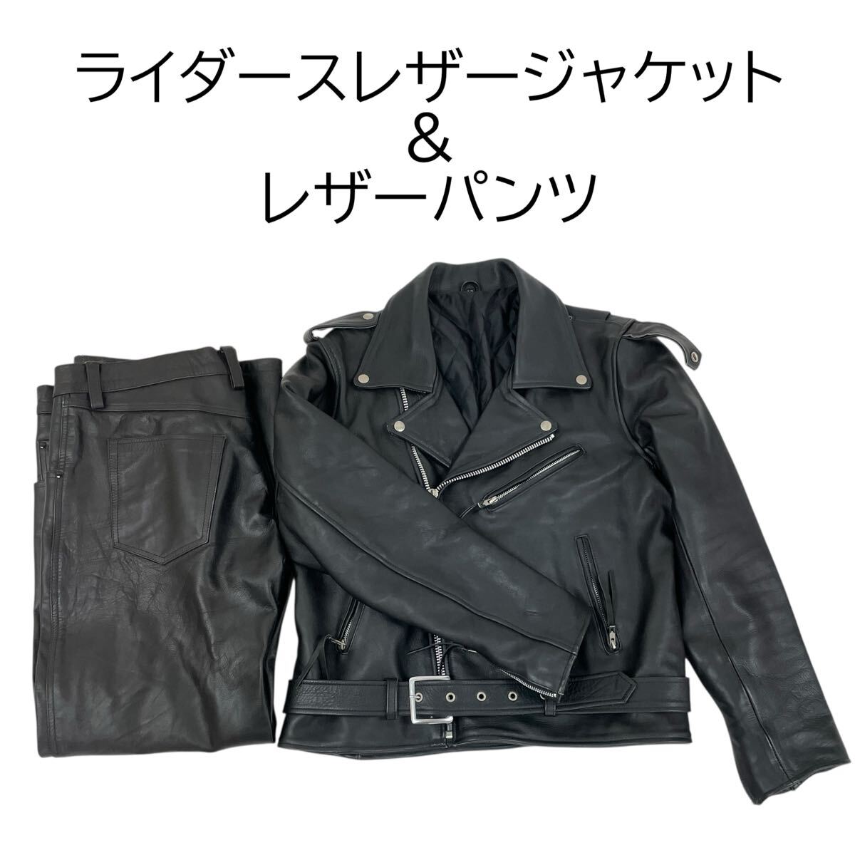- レザー ダブルライダースジャケット ライダースパンツ 牛革 本革 フリーダム ホーンワークス Freedom HORN WORKS ブラック 黒#0691-002C2