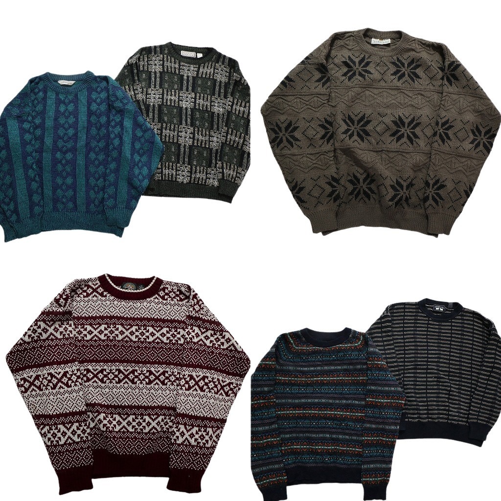 > 古着卸 まとめ売り 総柄ニット セーター 6枚セット (メンズ L ) クルーネック ノルディック柄 フェアアイル柄 中古 古着 NC3507