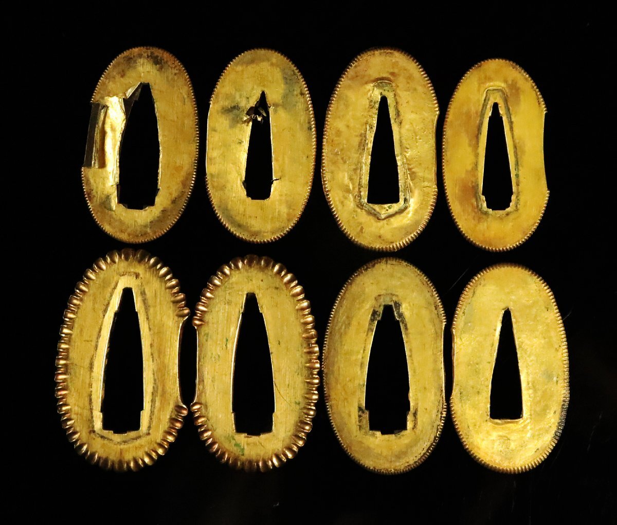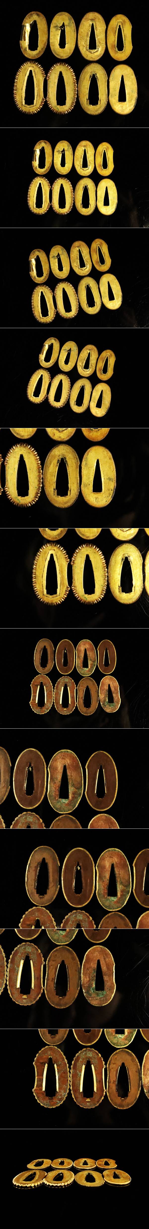 - 【ASAHI】金着せ切羽!金着縁頭!金被せ!刀装具 拵え 金無垢 八枚まとめて 50g金保証 一枚2g~3gの金が取れます[710136yp]