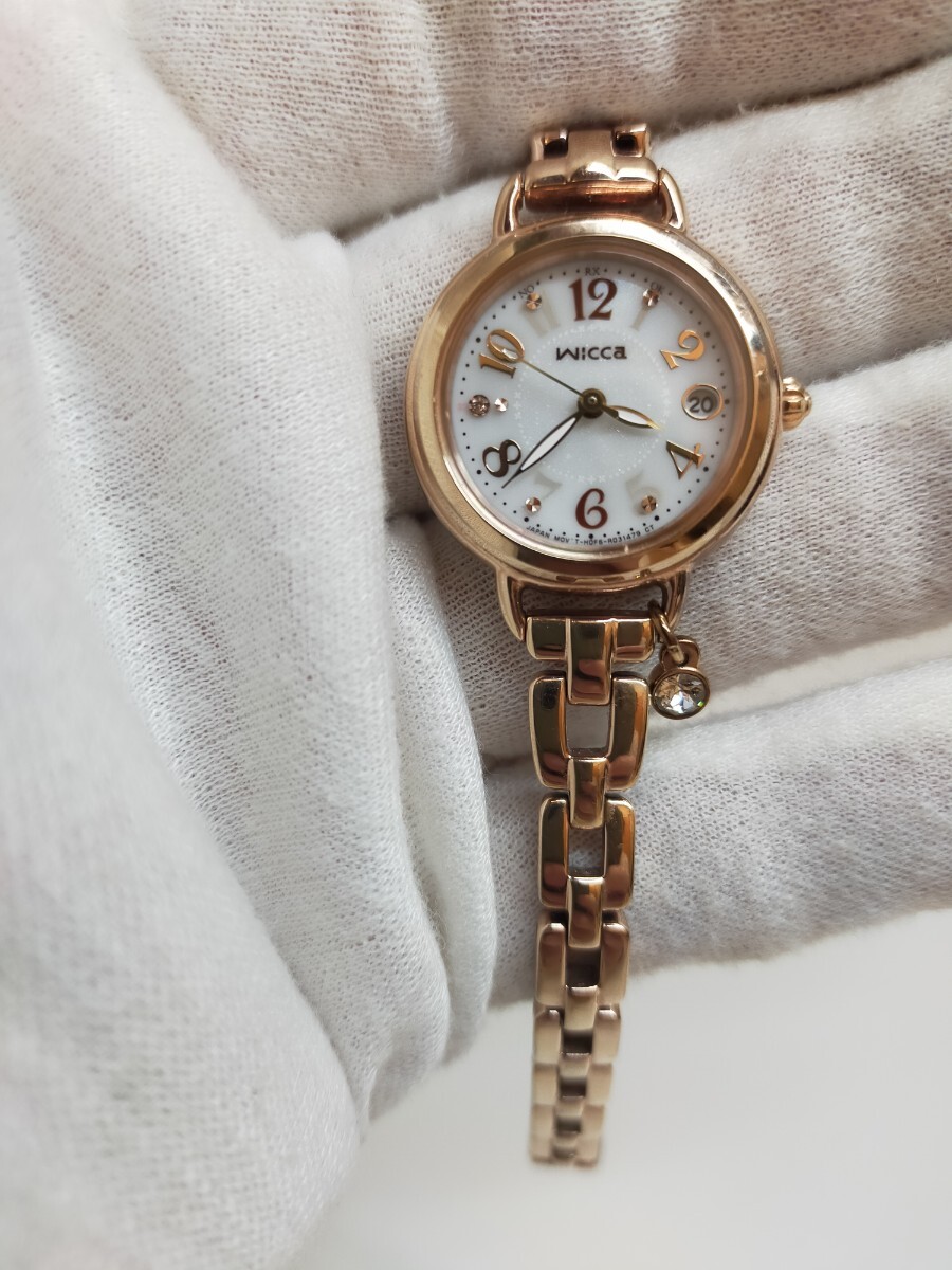 > N CITIZEN シチズン wicca ウィッカ H0F6-R007505 電波ソーラー 1P石付 デイト レディース腕時計 ゴールド金