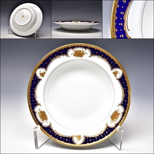 > SP5594 宮内庁御用達 大倉陶園 瑠璃金彩 エッチング 皿 限定 Limited Edition 洋食器 食器 ディナープレート スープ プレート 飾皿 /G256