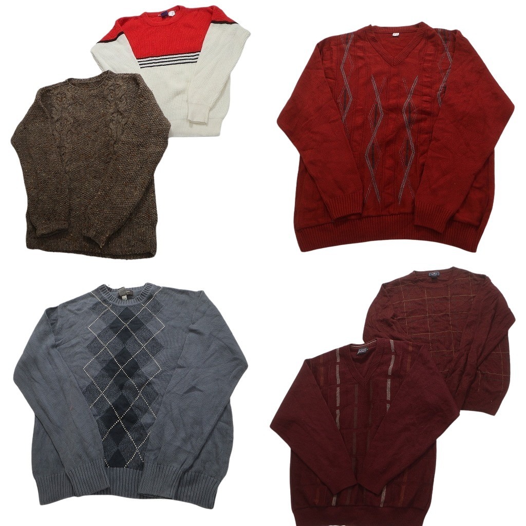 - 古着卸 まとめ売り ニットMIX セーター 6枚セット (メンズ L ) ライン ケーブル編み Vネック アーガイル柄 中古 古着 NC3570 1円スタート