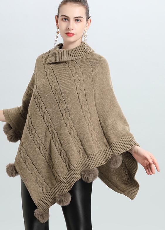- M1021 ポンチョレディース● 着心地抜群 20代30代40代 ● 羽織 ニット素材 ケーブル編み キャメル