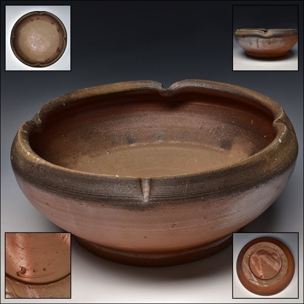 - U08784 吉本正 備前 窯変 大鉢 鉢 懐石 会席 茶道具 師 人間国宝 藤原啓