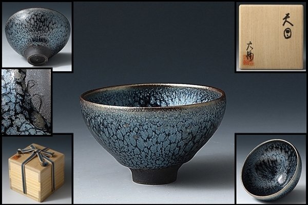 > TB040 希少 橋本大輔 個人作 彫銘 天目 ぐい呑 盃 杯 酒盃 酒杯 酒器 煎茶 茶器 茶杯 共箱
