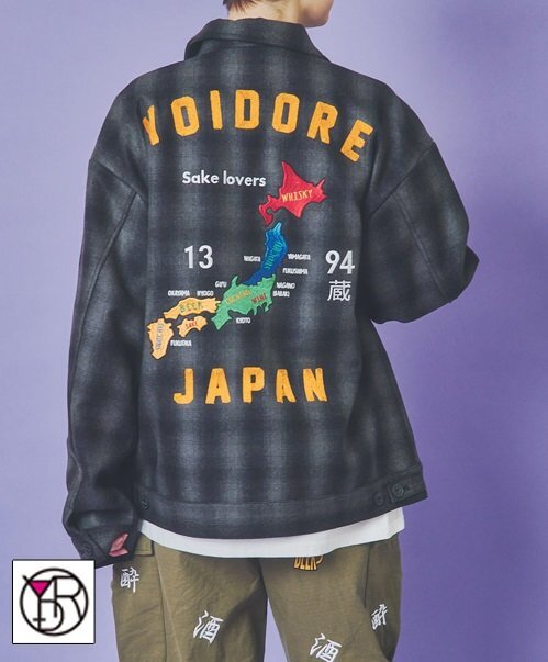 > スーベニアウールチェックジャケット◆YOIDORE ブラック XLサイズ XL(メガジョッキ) 835303 ヨイドレ 酔いどれ ユニセックス オーバーサイ