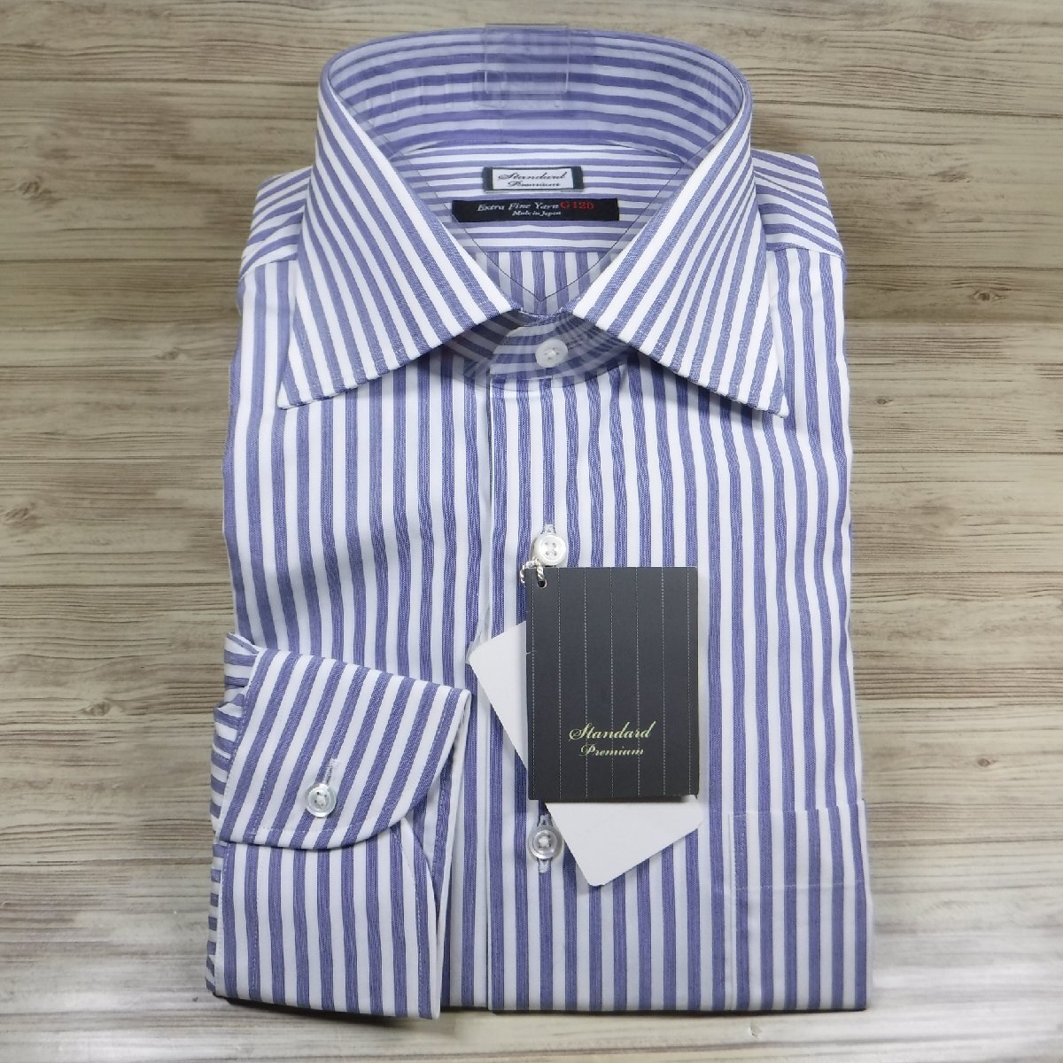 - TT199 阪急百貨店 スタンダード 定価1.4万 日本製 ワイドカラー 形態安定 長袖ドレスシャツ 42-82 L ブルーストライプ ワイシャツ
