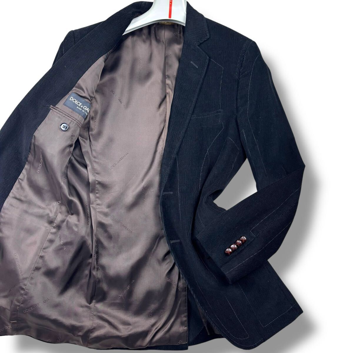 - 1円 美品 ドルチェ&ガッバーナ DOLCE&GABBANA テーラードジャケット コーデュロイ くるみボタン ロゴプレート 裏地ロゴ総柄 イタリア製 46M
