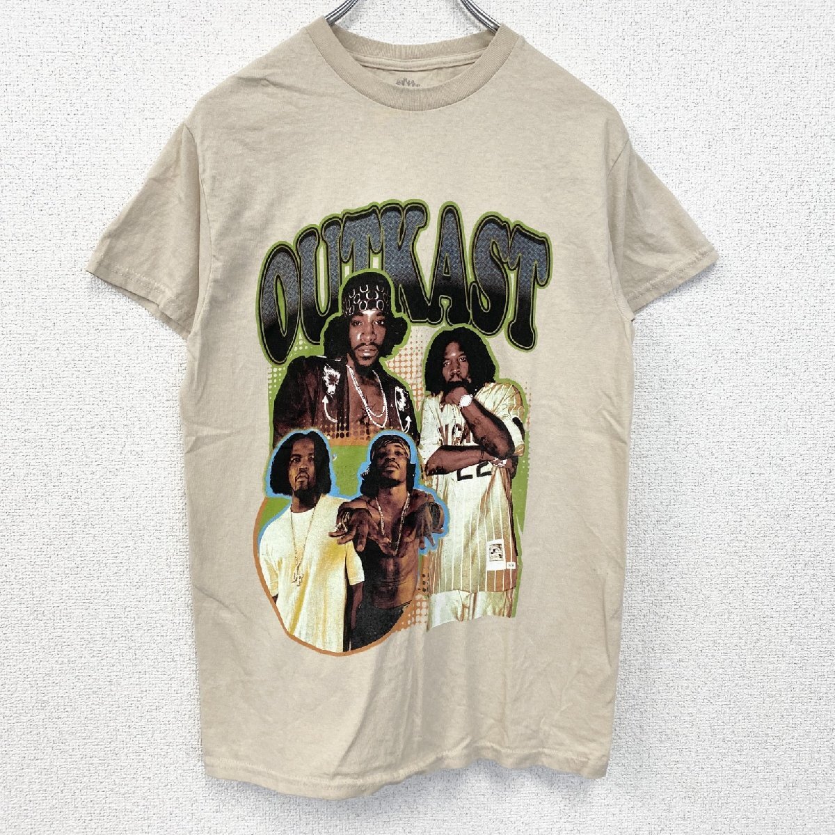 > 古着 used OUT KAST アウトキャスト 半袖プリントTシャツ ヒップホップ レトロ クルーネック ベージュ Sサイズ