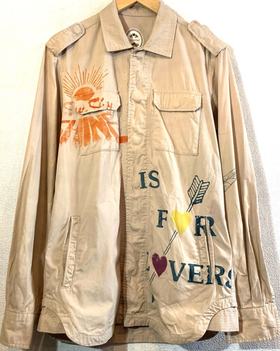 - GANESH★サファリシャツ★シャツジャケット★転写★アートプリント★マルチカラー★両面プリント★ガネーシュ 定価23,000円 淡色 ベージュ