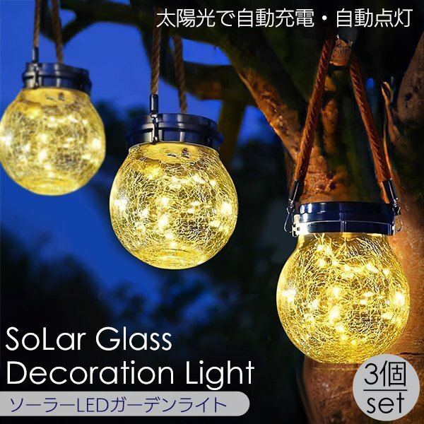 > ソーラーガラス デコレーションライト 3個セット ガーデンライト LEDライト ガラス 太陽光 充電 発電 屋外 室内 防水 電球色おしゃれ庭防犯
