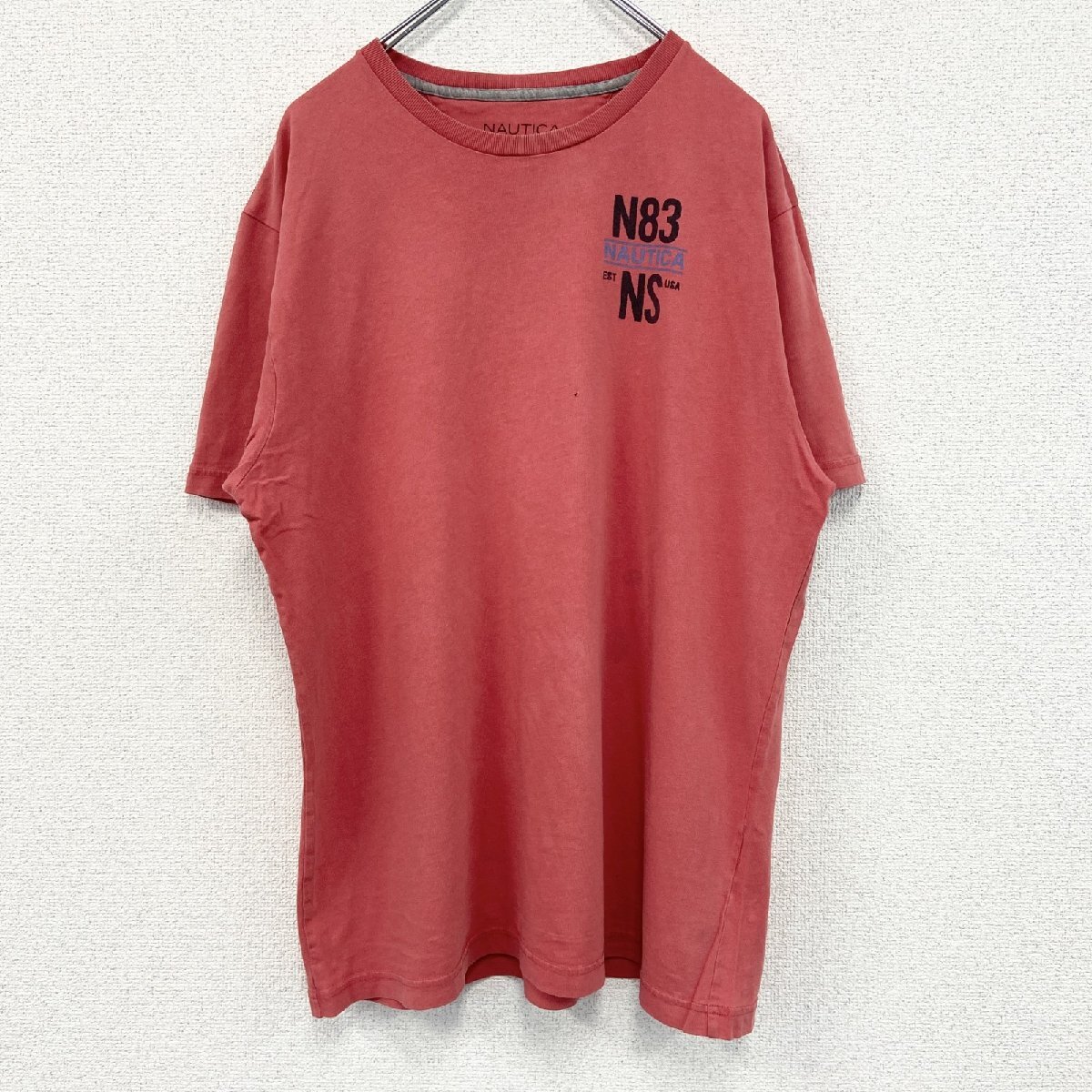 > 古着 used NAUTICA 半袖プリントTシャツ ヨット 赤 レッド カジュアルデザイン クルーネック レトロ Lサイズ