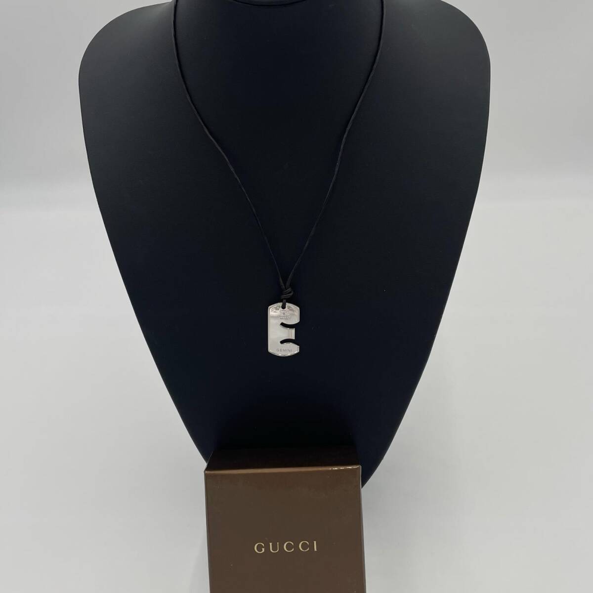 - 貴金属 ペンダントトップ シルバー ネックレス GUCCI SV925 10.65g(革紐含む) 革紐約50cm ホロスコープ_ふたご座_GEMINI グッチ ◆2004