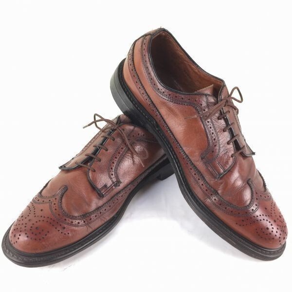 - 70s-80s以前? USAVintage【10C/27.0-27.5】ロングウイングチップ ビジネスシューズ〈茶〉グッドイヤー製法/メンズ 菅NO.メZB-138