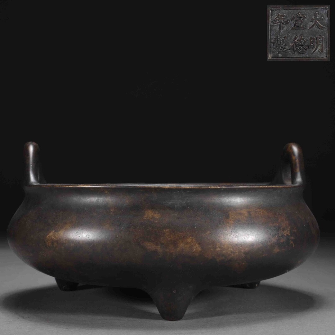 - 【永】明時代 宣德年製 古銅製 沖天耳爐 極細工 古銅彫 置物擺件 古美術品 古董品 収集 古美味 旧家蔵出 中国唐物 A15