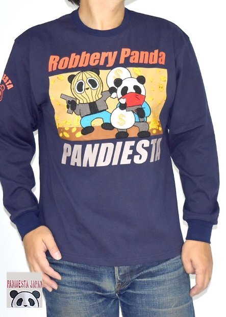 - 因果応報パンダロングTシャツ◆PANDIESTA JAPAN ネイビー Mサイズ 595965 パンディエスタジャパン 長袖Tシャツ