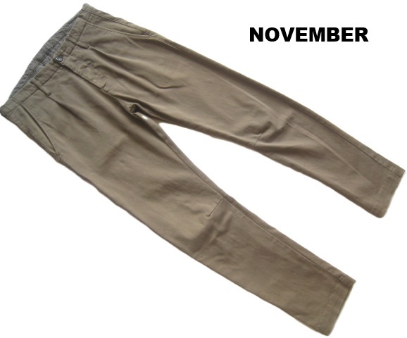 > 極上イタリア製!!ノーベンバー November*定価3万 ピグメント染め加工 1プリーツ ストレッチコットンスラックス・パンツ W28 S カーキ