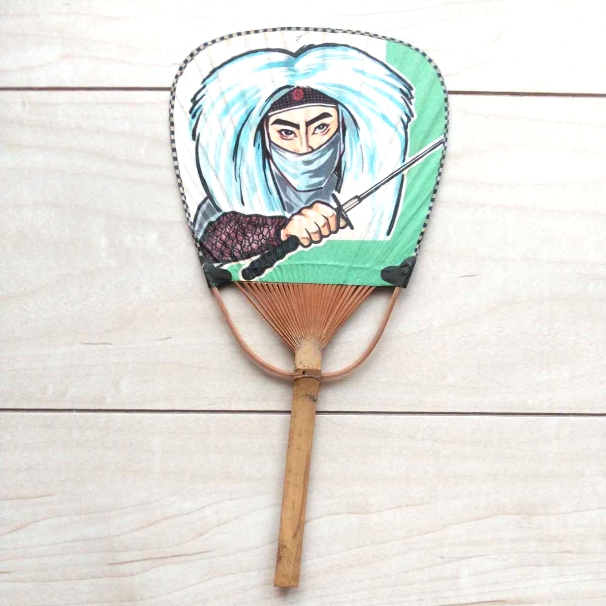 - ■昔の勧善懲悪物の時代劇『白馬童子』の小型団扇1柄。作画者は不詳。長さ26.2㎝。幅13㎝。