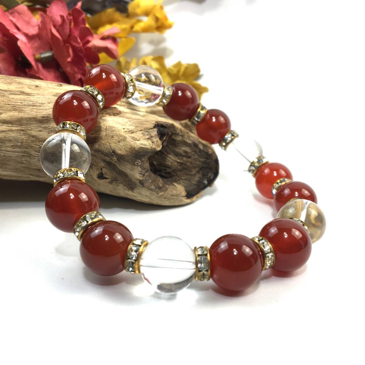 - 赤瑪瑙&水晶 パワーストーン ブレスレット 天然石ブレス (ゴールド) 12mm 幸運 開運 メンズ 男性♪