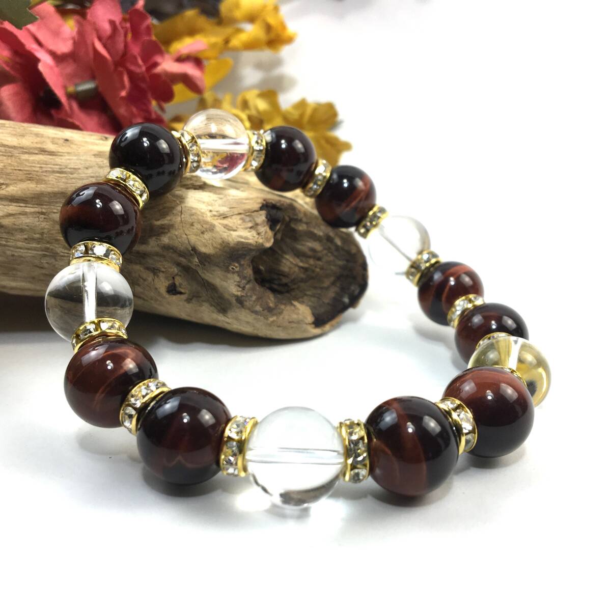 - レッドタイガーアイ&ハウライト パワーストーン ブレスレット 天然石ブレス (ゴールド) 12mm 幸運 開運 メンズ 男性♪