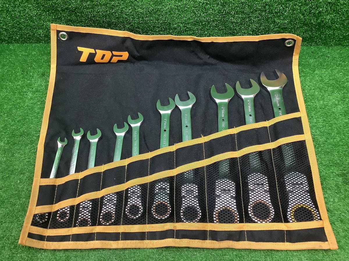 - 中古品 TOP トップ工業 首振り ロック ラチェット コンビ セット 10本組 FRC-10000LKS ※専用工具袋付き