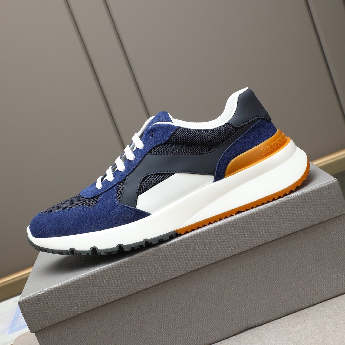 - ネイビー26.0cm ★送料無料★ブルネロクチネ★メンズ スニーカー, カーフレザー, メッシュ素材, スポーツカジュアル, ラグジュア