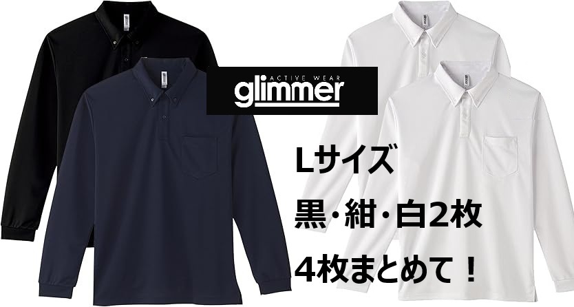- ■ 超破格! glimmer/グリマー 4.4オンス ドライ ボタンダウン 長袖 ポロシャツ 胸ポケット sizeL 黒・紺・白×2枚 計4枚まとめて!