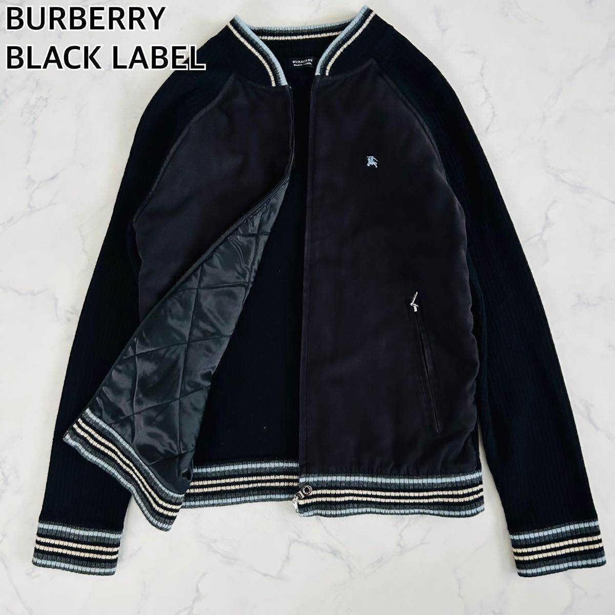 - BURBERRY BLACKLABEL バーバリーブラックレーベル ブルゾン ジャケット ジップ ライン 異素材ドッキング リブニット ツイード M