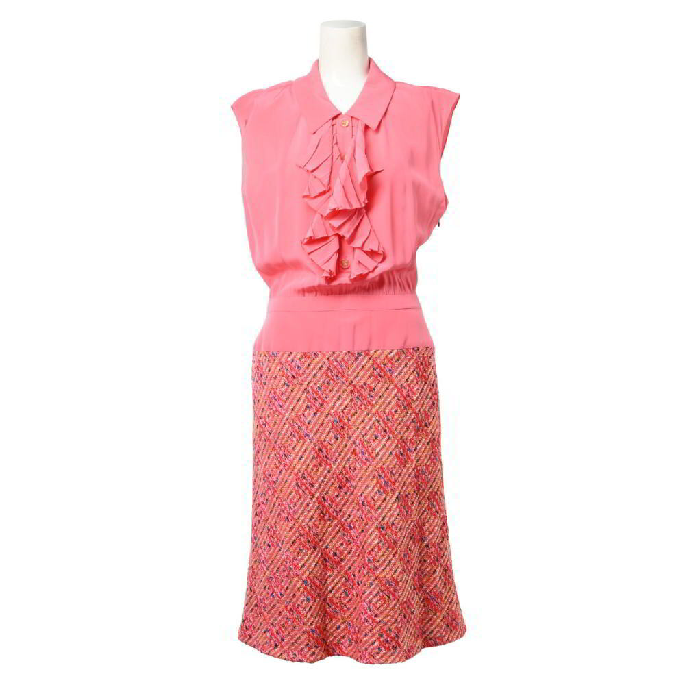 - 美品 CHANEL 01C P16997W02702 シルク切替 ツイード ワンピース 38 ピンク シャネル KL4BAPLU92