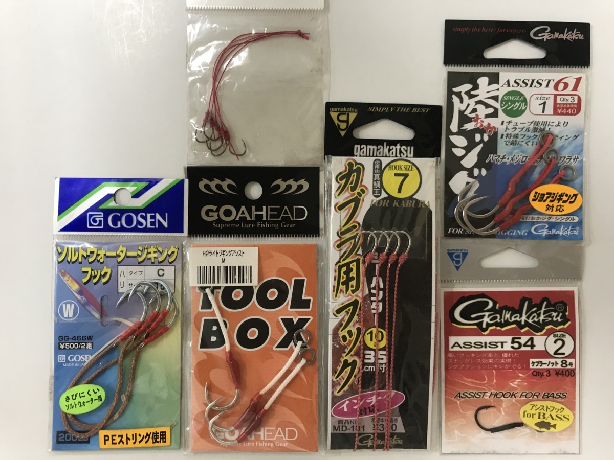 - ゴーセン ソルトウォータージギングW C 15/ HPライトジギングアシスト M/ カブラ用フック 銀 7号/ 陸ジグ シングル 1号 4種4点 送料無 H120